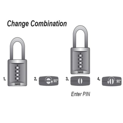 adlock with a solid die-cast zinc body and a hardened steel shackle. 3 digit (40mm) or 4 digit (50mm) resettable combination where you can set your own PIN.