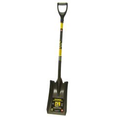 Roughneck Square shovel with D handle and is 36 inches long, the pressed steel blade is fully hardened to provide fast and long lasting work.