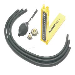 Air testing U Gauge kit containing all the items (except testing plugs) needed to carry out an air test to 100mm (4 in) water gauge pressure on any size of drain or pipe.,Kit contents are :-,U Gauge, hand bellows pump, 1/2 in and 1 in BSP nipple caps, tee piece.,Three x 600mm lengths of rubber hose.,The kit is housed in a display box with full instructions.