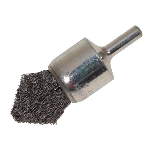 End brush with 6mm shank for cleaning and de-burring in hard to reach areas. For the removal of paint and the cleaning of moulds and castings. Also for working on edges and recesses and the inside of bores etc.