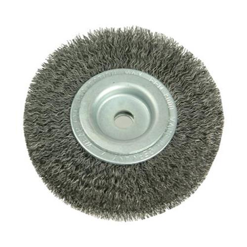 Wheel Brushes filled with crimped wire are used for the purpose of obtaining different surface finishes.,For the removal of rust, paint and dirt, for roughening, de-burring. Stripping or polishing.