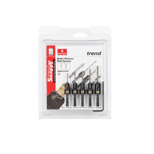 Trend SNAP/CS/SET Trend Snappy 5 Piece Countersink Set Heat treated tool steel countersinks with a HSS drill.