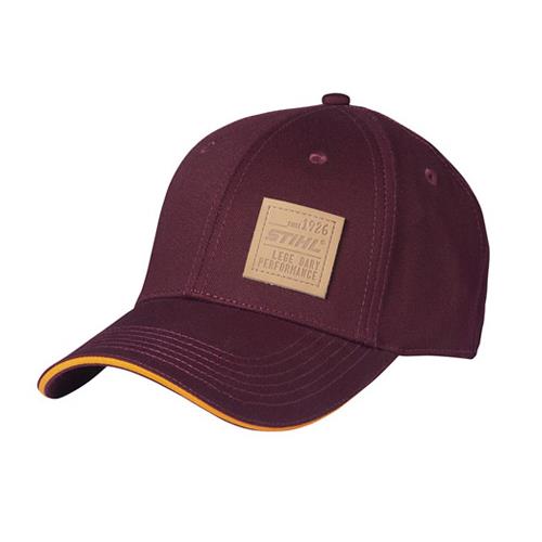 Bordeaux colour, 100% cotton, STIHL leather badge front, size adjustable, one size fits all.